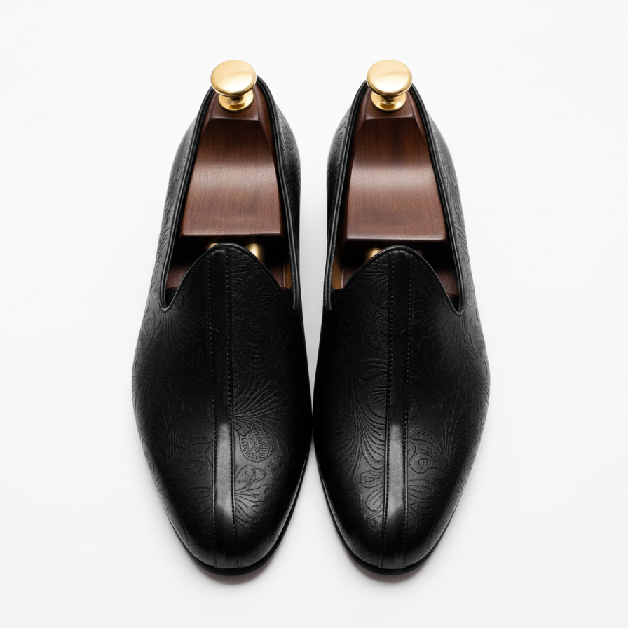Black Leather Tana Peshawari Jutti Loafers | Wedding Shoes for Groom | Shoes for Haldi Mehendi Sangeet