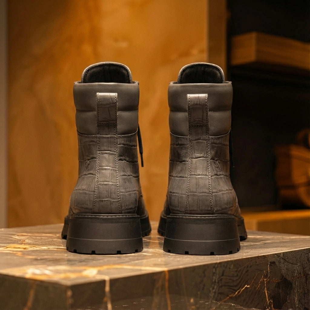 Grey Croc Print Leather Elvio Combat Boot