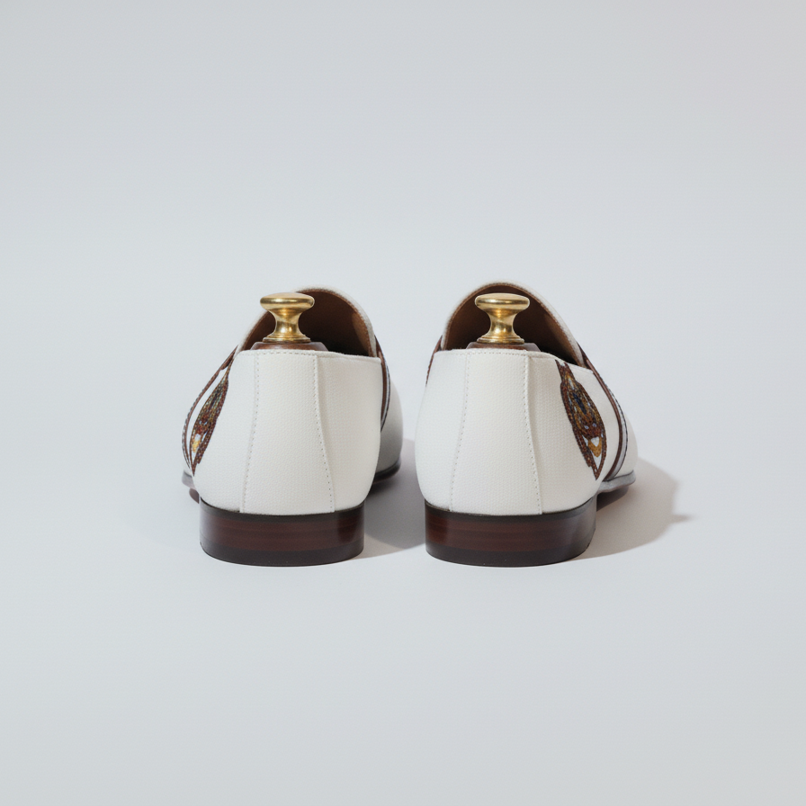 White Velvet Tana Peshawari Loafers | Wedding Shoes for Groom | Shoes for Haldi Mehendi Sangeet