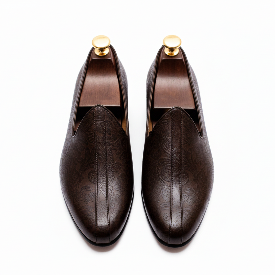 Brown Leather Tana Peshawari Jutti Loafers | Wedding Shoes for Groom | Shoes for Haldi Mehendi Sangeet