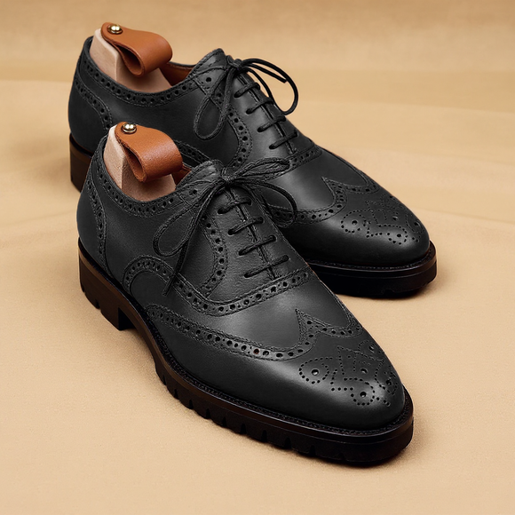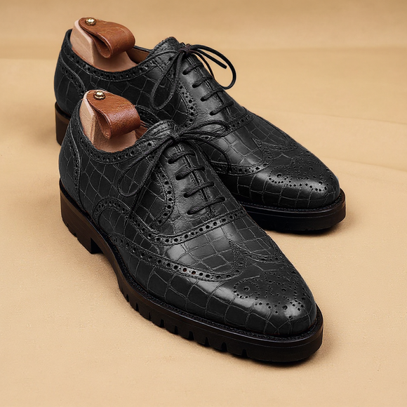 Height Increasing Black Patent Leather Desiderio Lace-Up Pointed Oxford Shoes