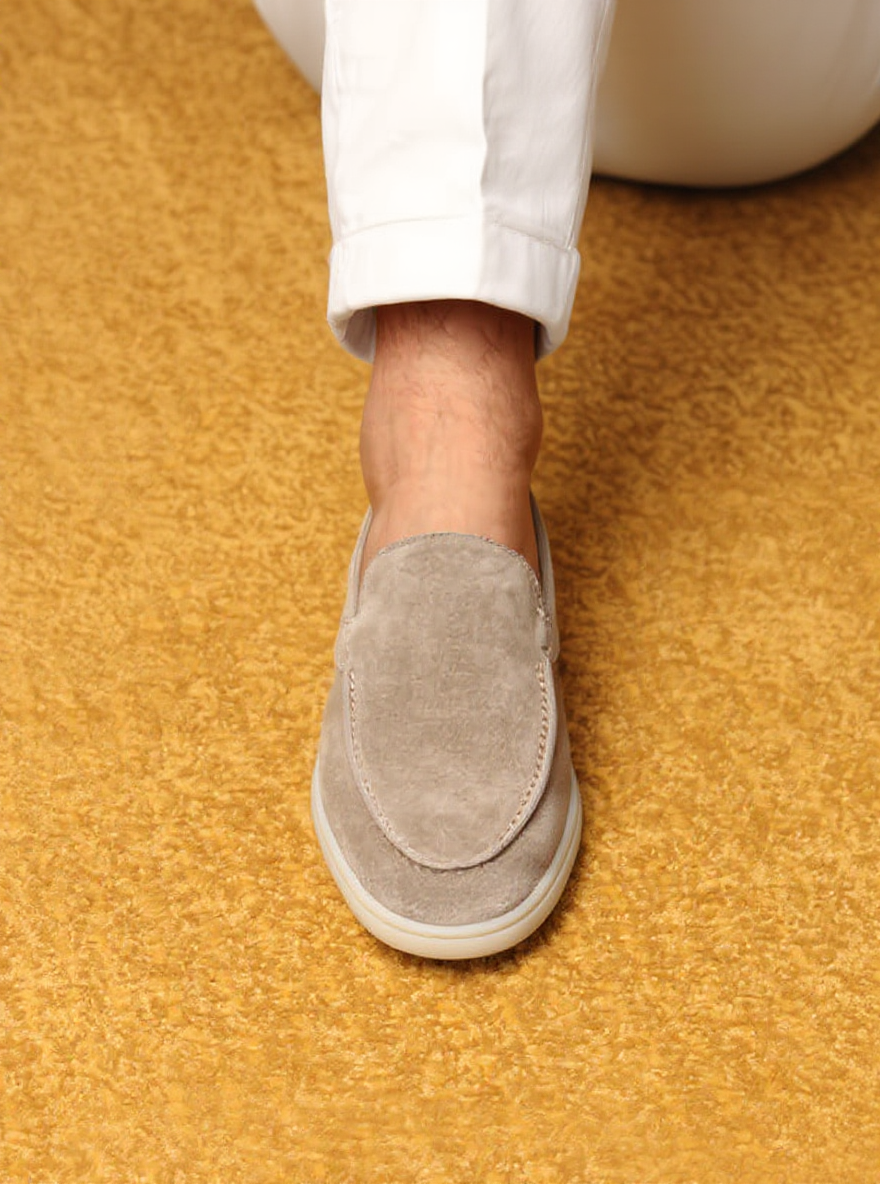 Grey Suede Athena Yatch Loafers with White Soles - Summer Casual Shoes Collection 2025 Collection