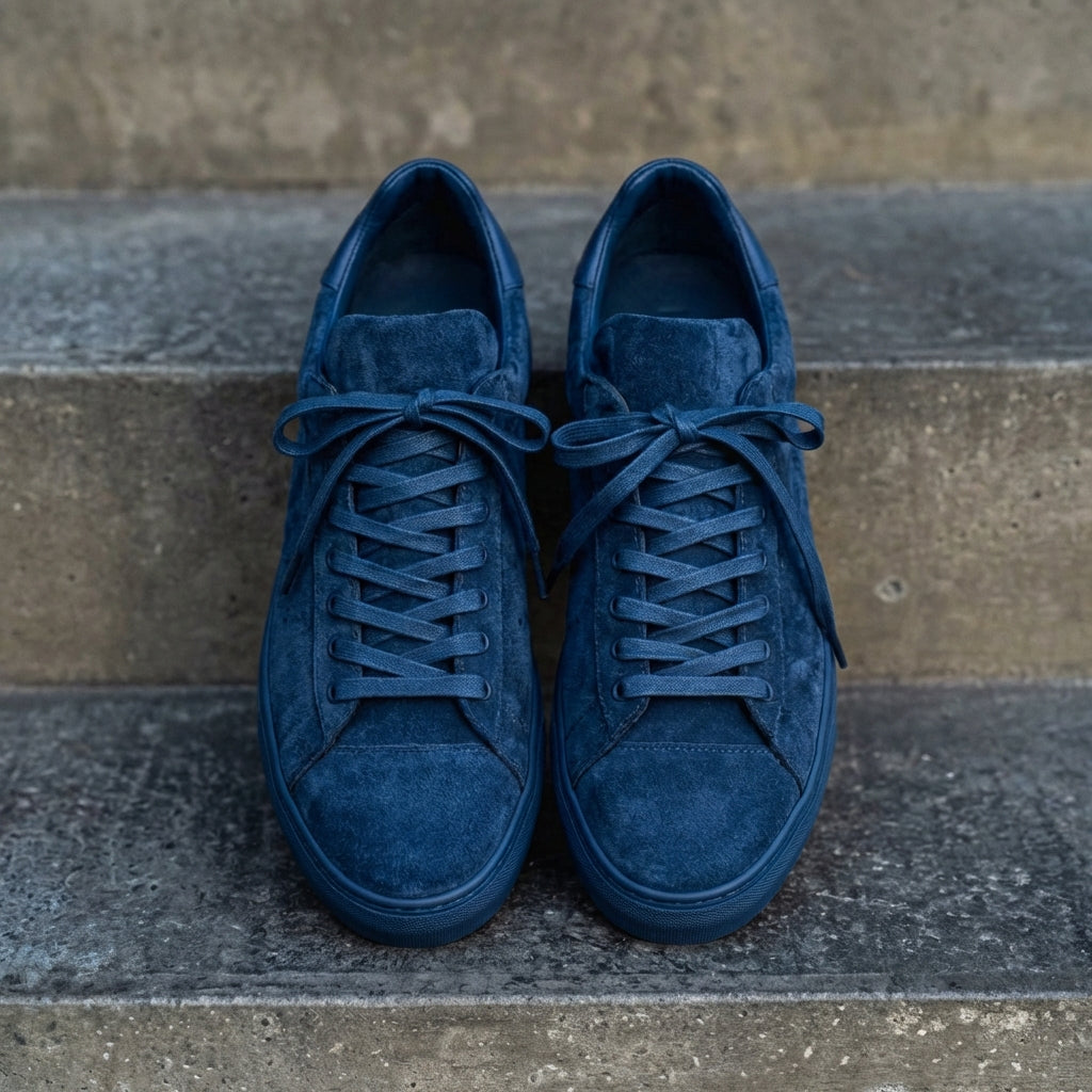 Blue Suede Leather Remigio Lace-Up With Red Sole Sneakers