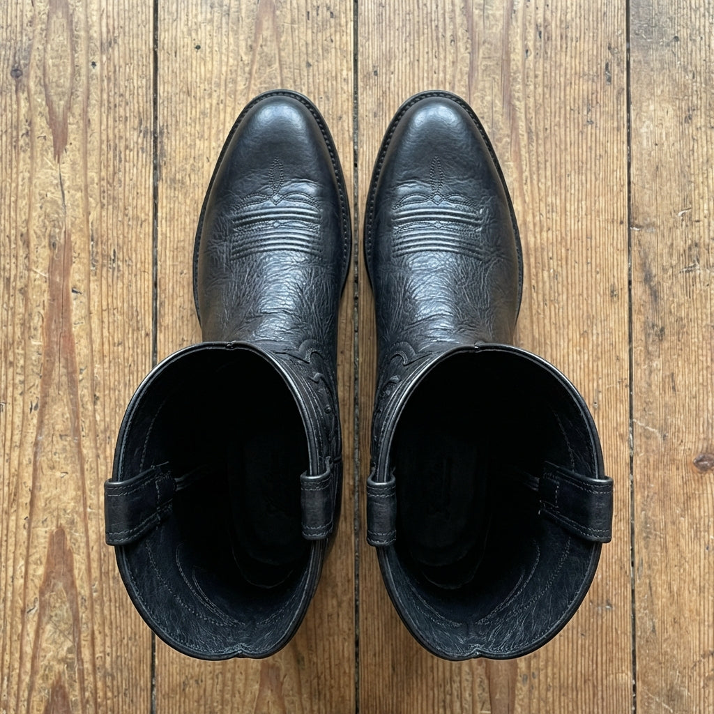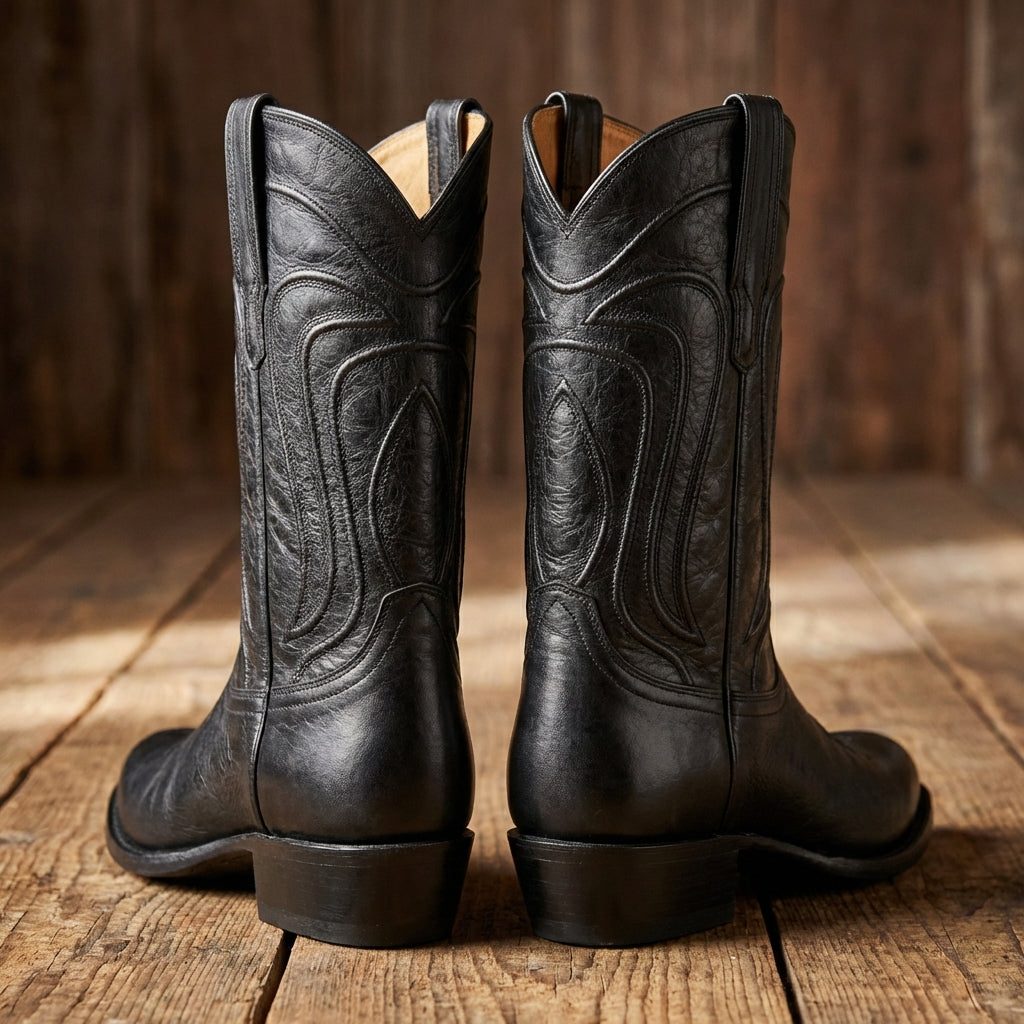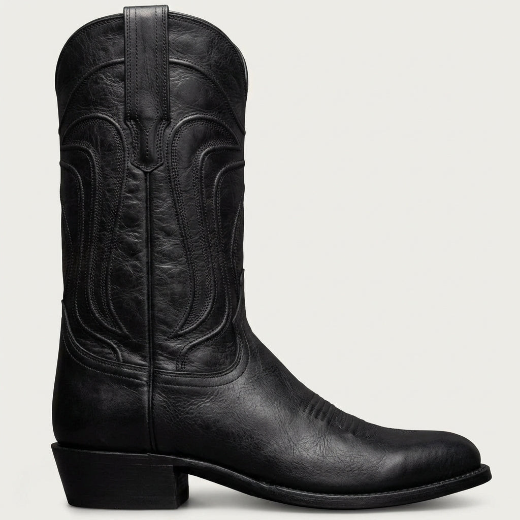 Black Leather Renovaux Slip On Zipper Western Cowboy Boots - AW24