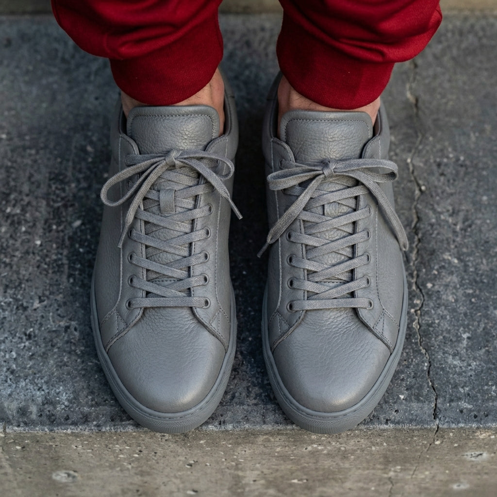 Grey Leather Remigio Lace-Up With Red Sole Sneakers