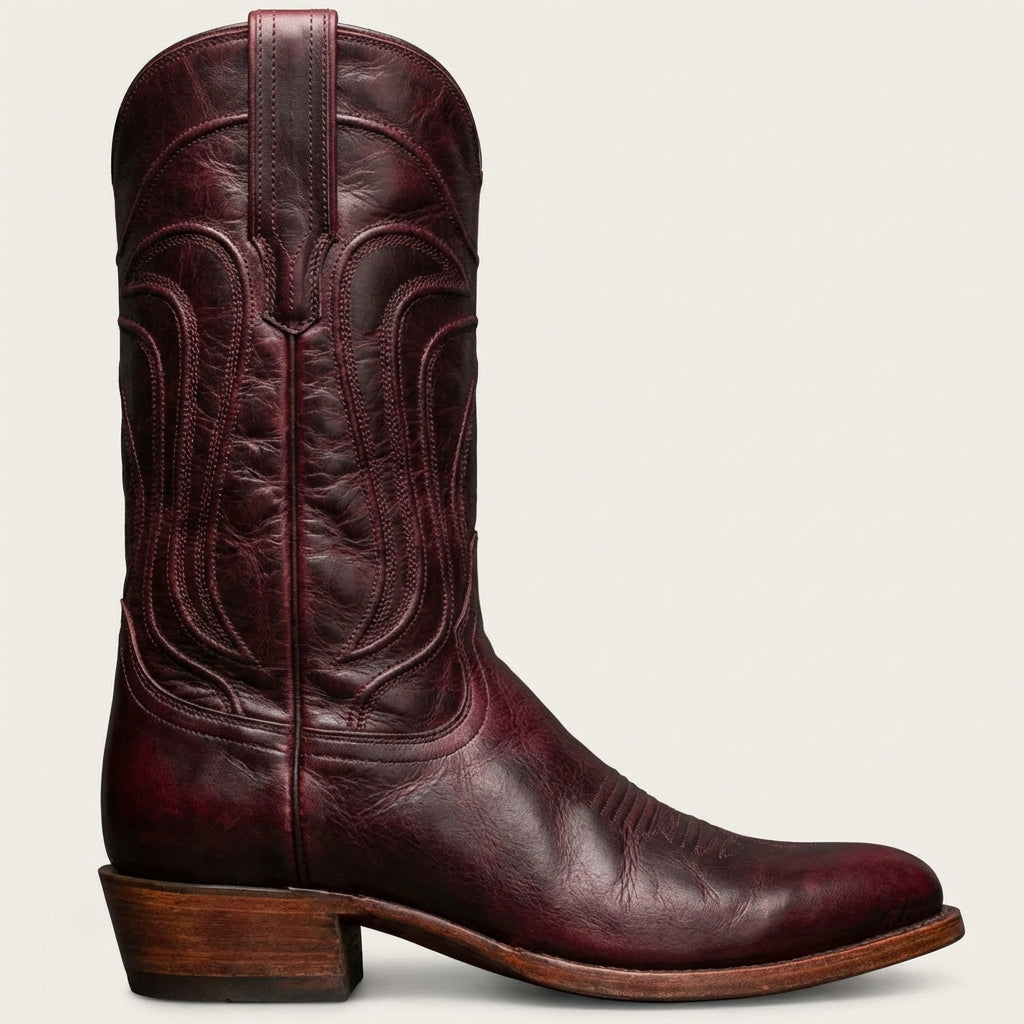 Burgundy Leather Renovaux Slip On Zipper Western Cowboy Boots - AW24