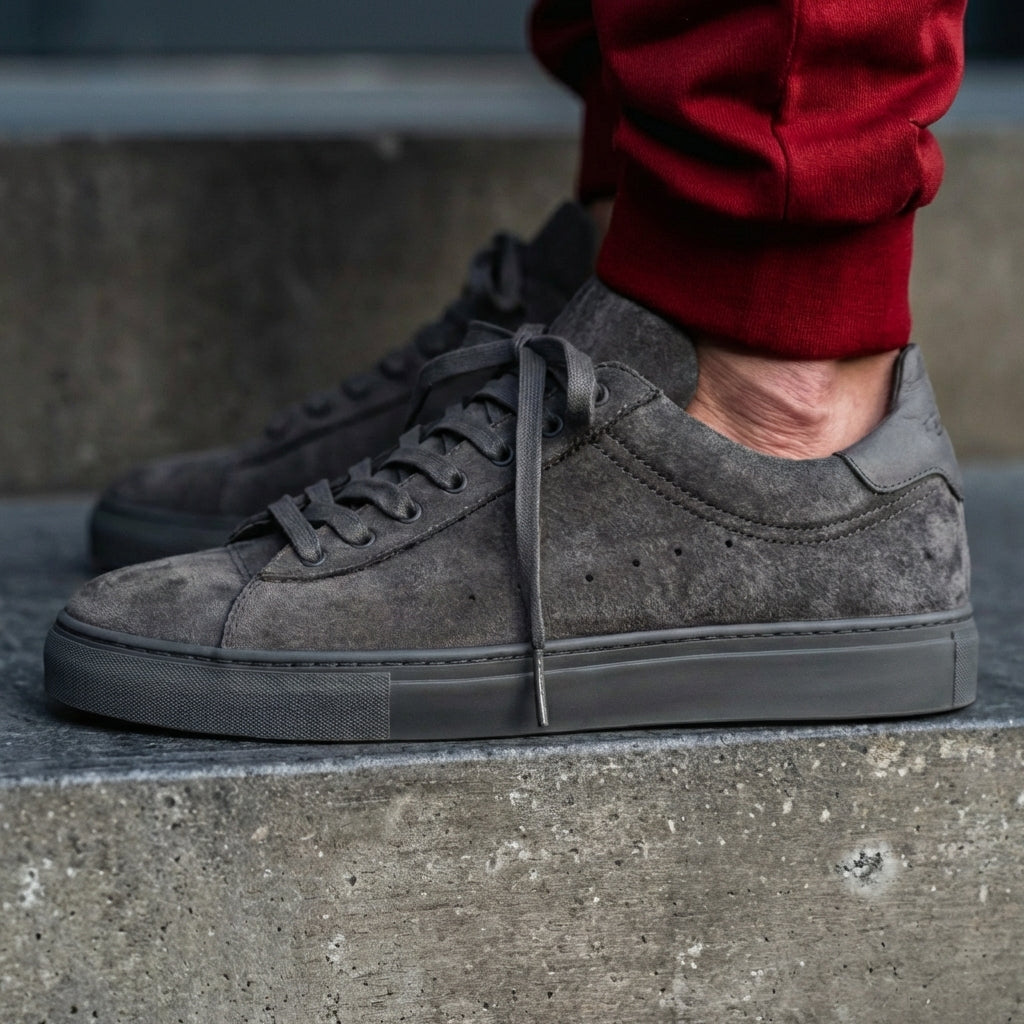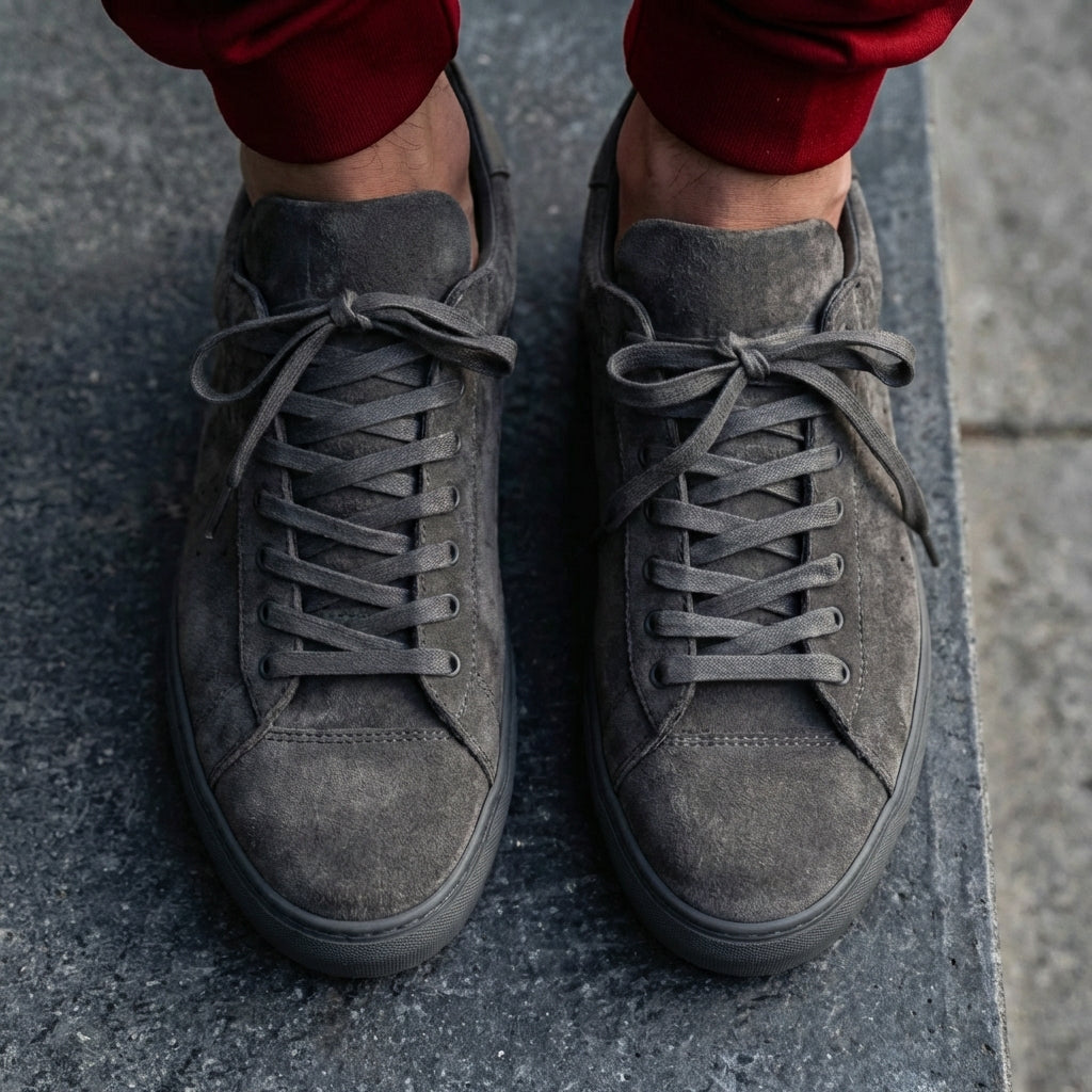 Grey Suede Leather Remigio Lace-Up With Red Sole Sneakers
