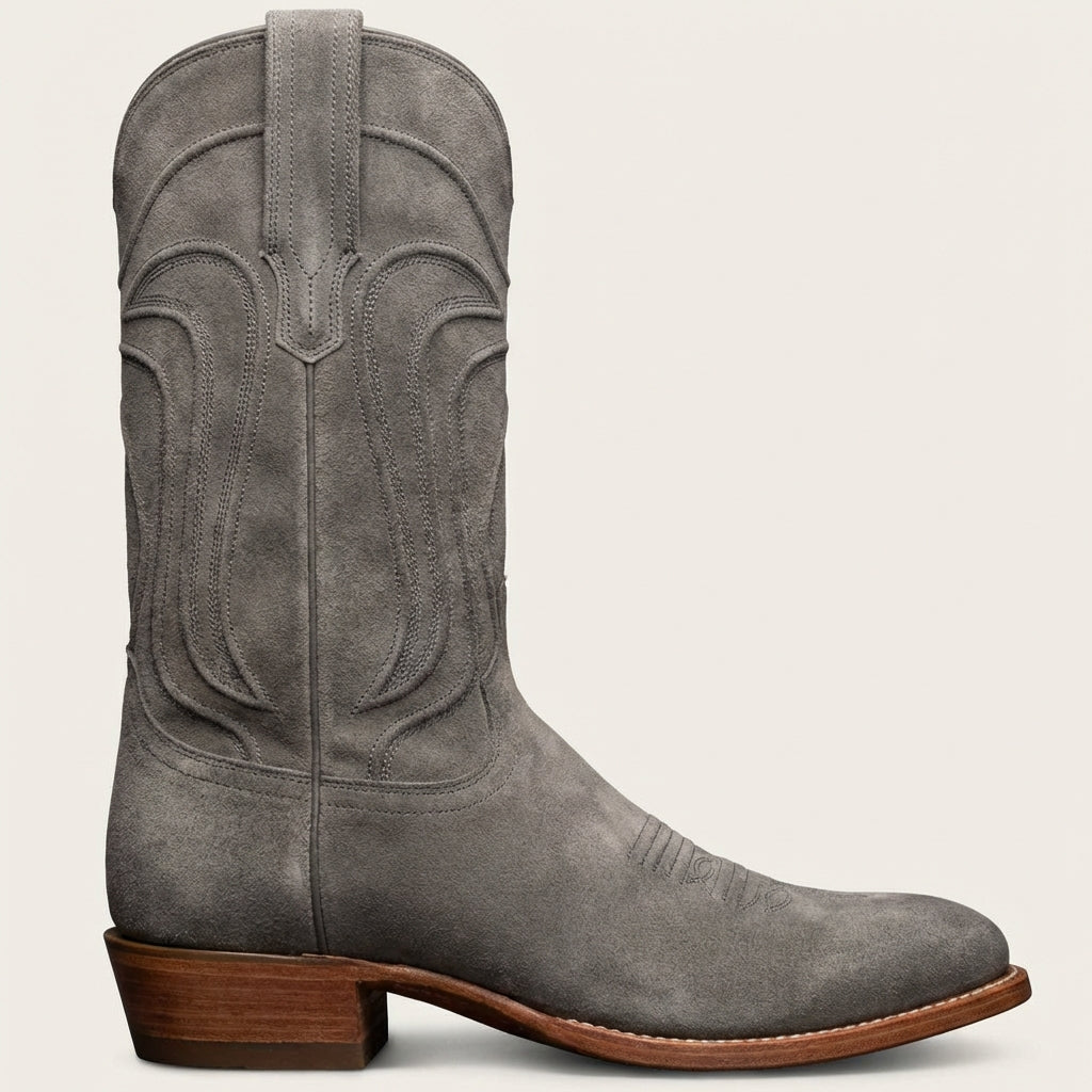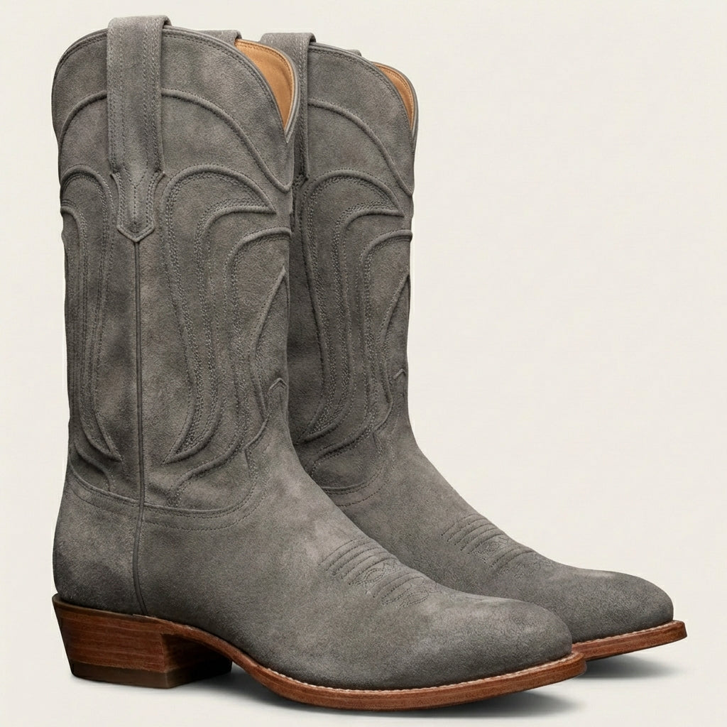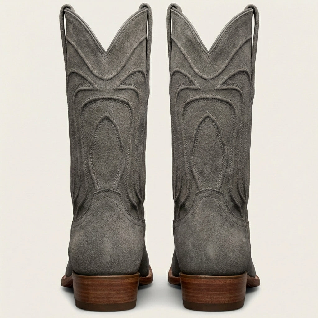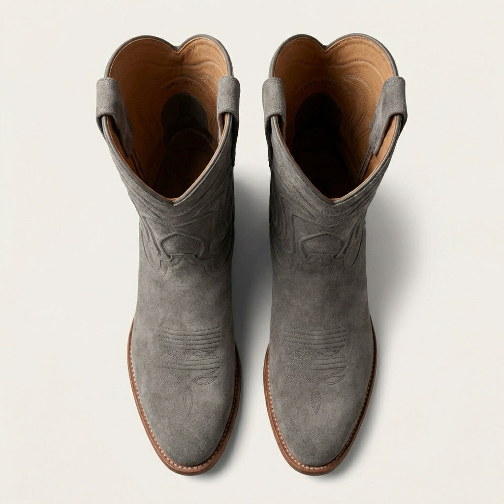 Grey Suede Leather Renovaux Slip On Zipper Western Cowboy Boots - AW24