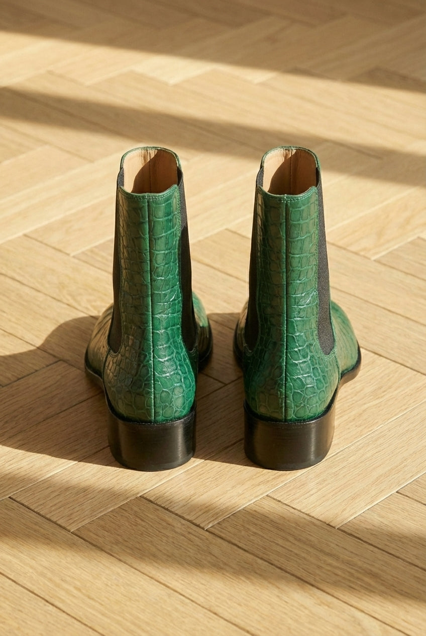 Green Croc Print Leather Amino With Split Toe Chelsea Boot
