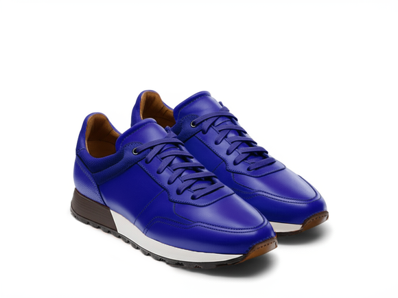 Luxury Edition - Artisian Made Navy Blue Italian Suede and Italian Leather Nausori Lace Up Running Sneaker Shoes