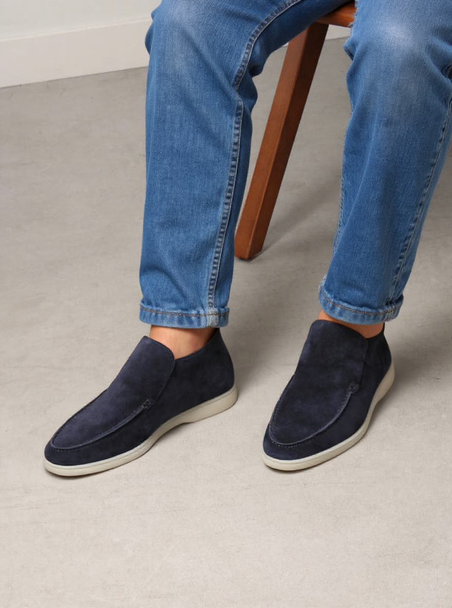 Height Increasing Navy Blue Leather Lusso Slip On Yatch Half Boots with White Soles - Summer 2024 Collection - ITALIAN AW26