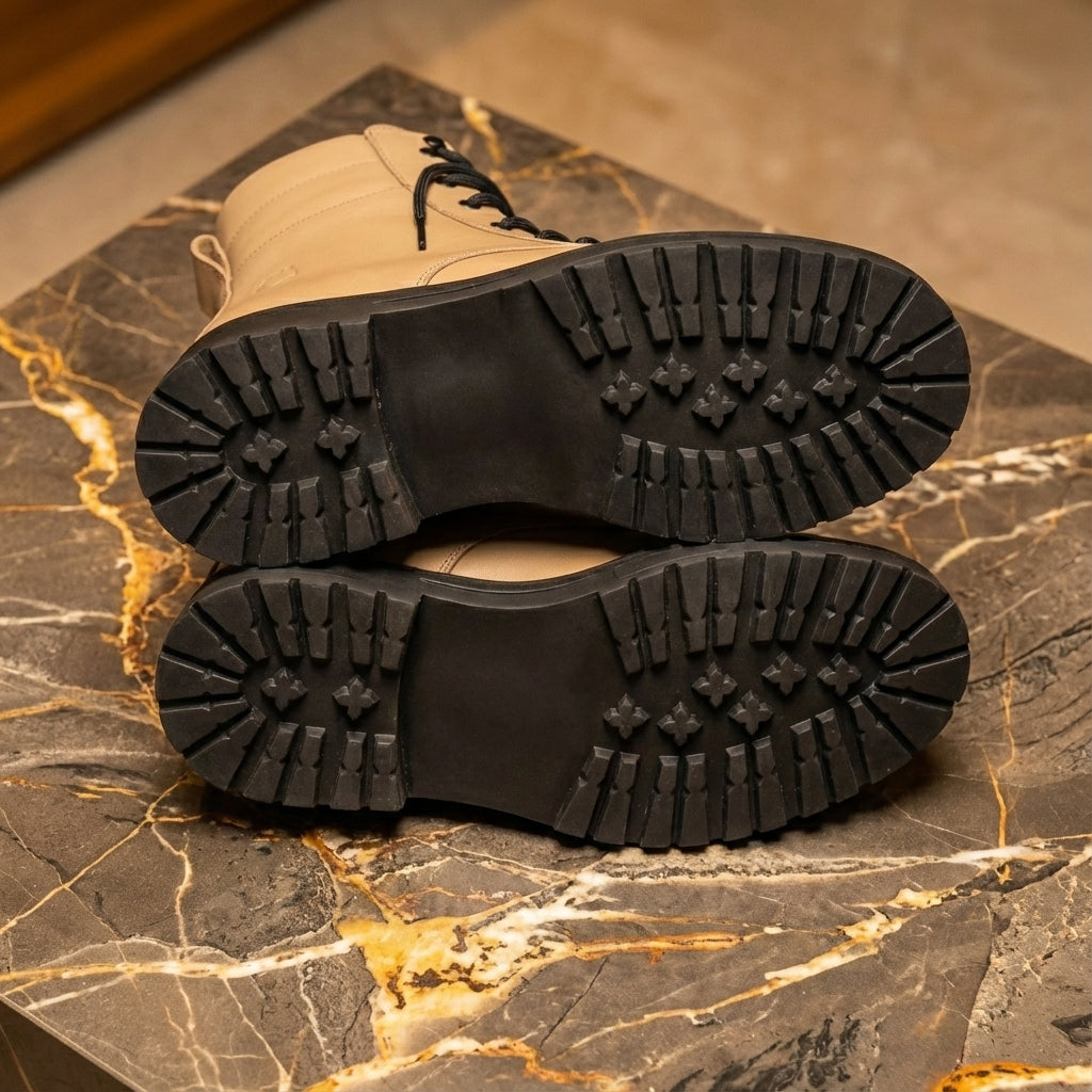 Beige Leather Elvio Combat Boot