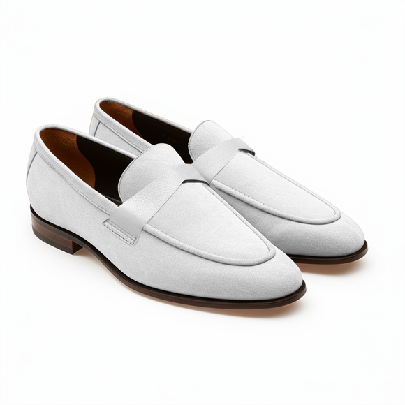 White Suede Leather Lucian Slip On Unlined Loafers - Comfort First Edition