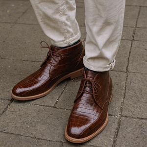 Brown Croc Print Leather Sahara Step Chukka Desert Boots with Leather Sole - Summer 2024 Collection