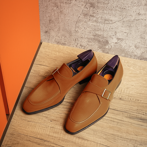 Brown Suede Leather Algarve Single Monk Straps - AW24