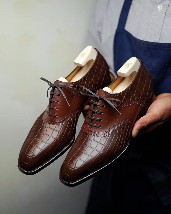 Brown Croc Print Leather Elowen Brogue Oxfords - Formal Shoes - SS23