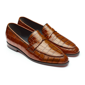 Brown Croc Print Leather Lucian Slip On Unlined Loafers - Comfort First Edition