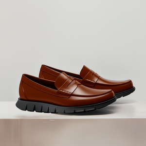 Brown Leather Evarado Penny Loafers with Black Hybrid Sole - SS23