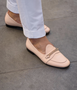Cream Leather Guida Loafers With Chain